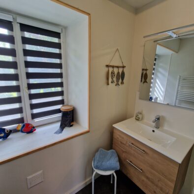 - A master bedroom with a double bed - A bedroom with 4 single beds - A landing - A convertible sofa on the first floor - A large living room with open kitchen - A bathroom (shower) - Separate toilet - A large terrace - Private parking for one car - Beautiful shared garden in a small enclosed meadow of 400 m2 with barbecue, petanque area.